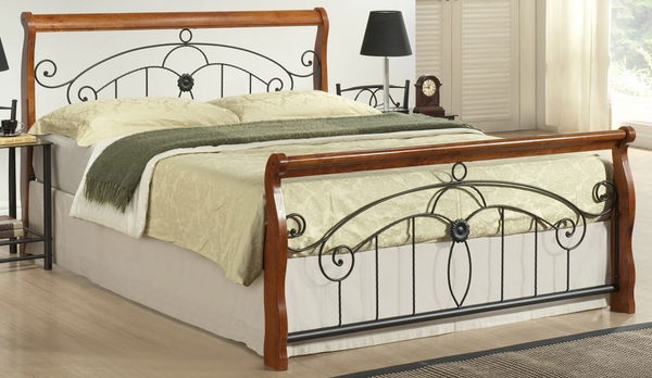 Elegantná posteľ v klasickom štýle. Zaujímavá kombinácia kovu a dreva. Kvalitné masivné drevo je vo farebnom prevedení čerešňa antická. Rám je kovový, tak ako aj originálne mreže černej farby na prednom a zadnom čele.