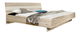 Manželská posteľ s vysokým čelom zvierejúcim menej ako 90 stupňový uhol smerom k stene. V strede čela je vodorovná hrubá linka v odtieni bielej farby. Posteľ stojí na dvoj širokých nohách a nemá úložný priestor. Prevedenie postele je dub pieskový. Materiál: DTD fóliovaný