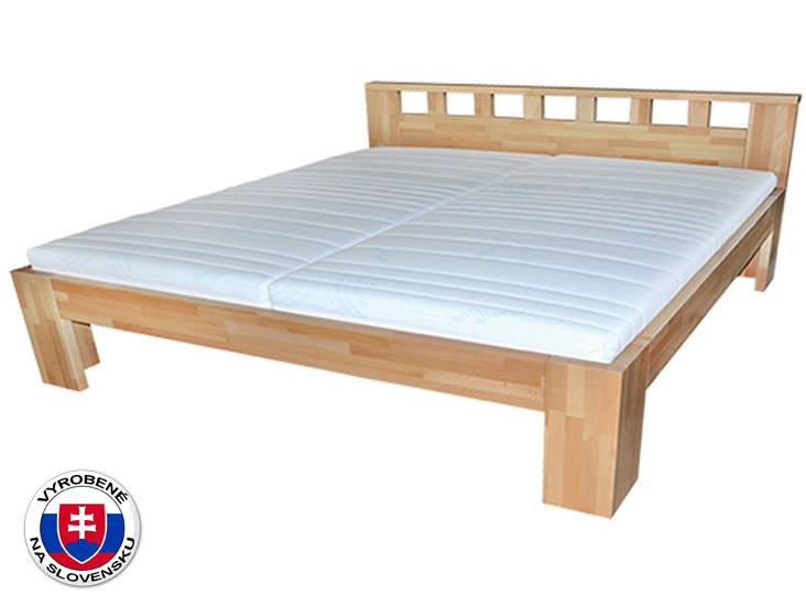 Manželská masívna drevená posteľ Lucia bez čela pri nohách s vnútornými rozmermi na matrac 180 x 220 cm. Čelo postele je zdobené otvormi umiestnenými pod hornou hranou. Hrúbka masívu je 40 mm, výška čela pri hlave je 95 cm a po hornú hranu bočnice je výška 50 cm. Posteľ je vybavená vnútorným výškovo nastaviteľným kovaním, slúži na upravenie výšky roštu a padne vhod, ak máte vysoký, alebo naopak tenší (nižší) typ matraca. V cene postele nie je zahrnutý matrac ani rošt, ale môžete si ich zakúpiť v našom obchode.