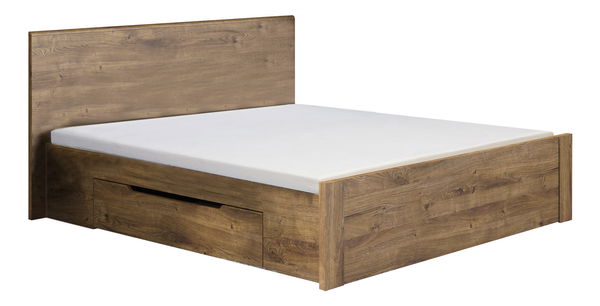 Vďaka manželskej posteľi Amnezi v farbe dub ribeck si užijete vynikajúci komfort pri spánku. Táto moderná posteľ je vyrobená z laminovanej drevotriesky a okrem svojho štýlového vzhľadu vás zaujme aj úložným priestorom. Posteľ disponuje dvoma zásuvkami, ktoré sa dajú z jednej aj druhej strany zasúvať pod jej konštrukciu. Spolu s ostatnými komponentami spálňového systému Amnezi si môžete vytvoriť ideálnu spálňu pre vás. Posteľ je dostupná v štandardnej veľkosti 160x200 cm a rošt a matrac s rovnakou veľkosťou sú k dispozícii v našej ponuke. S čiernymi kovovými úchytkami je manipulácia s nábytkom ešte jednoduchšia a praktickejšia. Komfort a pohodlie pri spánku sú zaručené s manželskou posteľou Amnezi vo farbe dub ribeck.