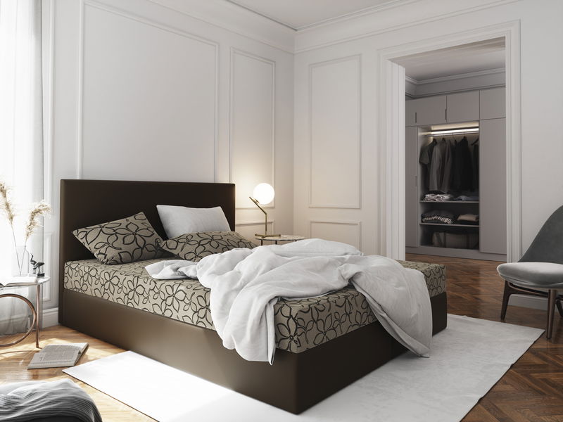 ZobraziťManželská posteľ Boxspring 140 cm Lilac (vzor + hnedá) je luxusná posteľ s vynikajúcim dizajnom a jemnými detailmi. Posteľ má výšku 106 cm a dĺžku 210 cm s úložným priestorom, ktorý vám umožní uložiť posteľnú bielizeň a iné veci. Je vybavená vysokým matracom z kvalitnej peny a pružín Bonnell, ktorý zaručuje mäkkosť a odolnosť voči prehĺbeninám a zvyšuje komfort spánku. Posteľ je k dispozícii v troch veľkostiach: 140/160/180 cm x 200 cm a tkanina je Flowers 48 + Sioux 1116, ktorá sa jednoducho udržiava. Konštrukcia je vyrobená z kombinácie drevotriesky a borovicového dreva, s maximálnym zaťažením 240 kg. Posteľ je dodávaná s roštom a matracom, ale Topper nie je súčasťou produktu, môžete si ho však doobjednať.