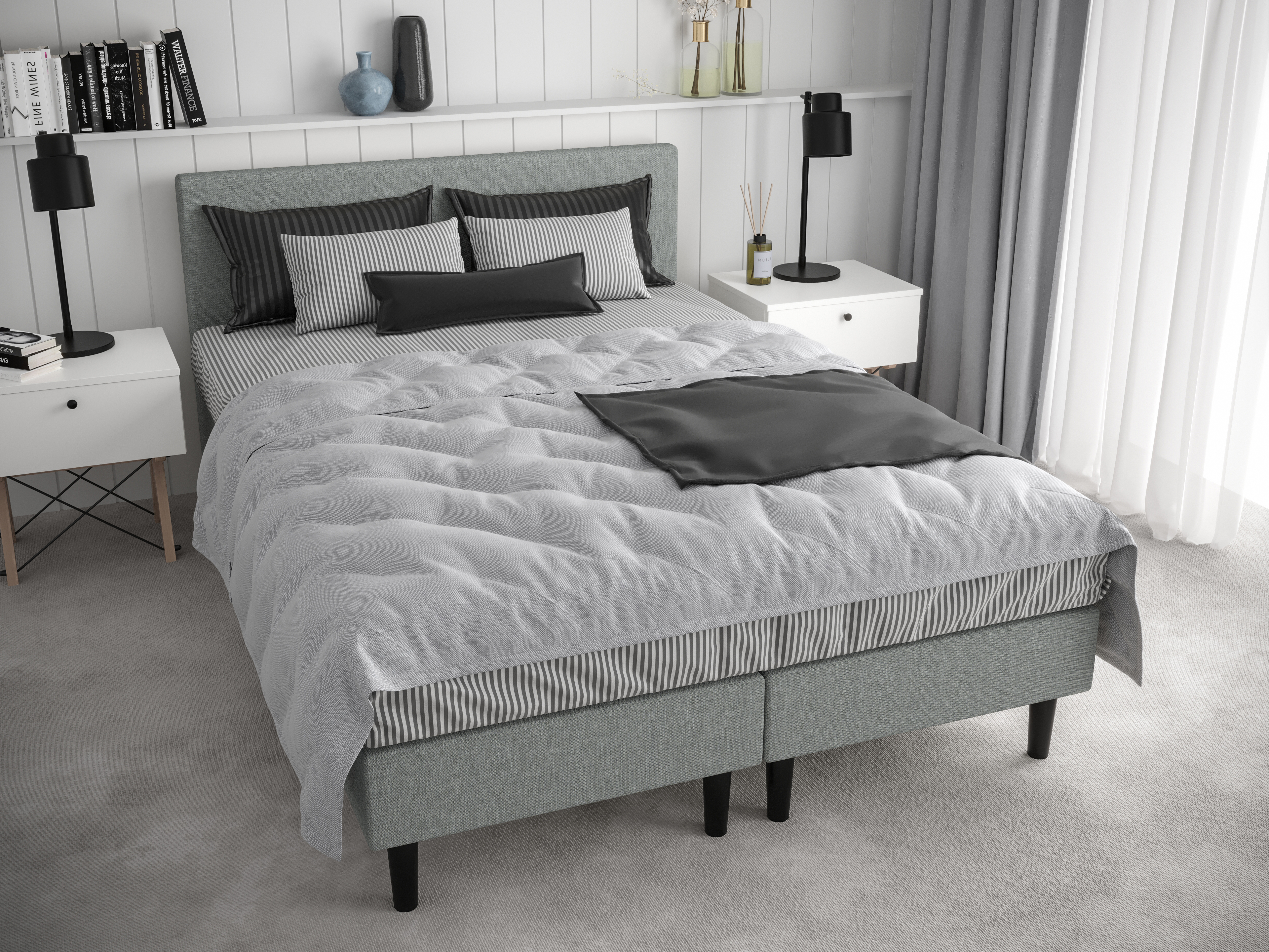 Manželská posteľ Boxspring 140 cm Rita (svetlosivá) je luxusná kontinentálna posteľ vyznačujúca sa elegantným dizajnom a jemnými detailmi. Posteľ má výšku 91 cm a dĺžku 200 cm. Je dodávaná s vysokým matracom, ktorý je vyrobený z kvalitnej peny a pružín Bonnell, čo zabezpečuje mäkkosť a odolnosť voči prehĺbeninám. Tkanina Inari 91, z ktorej je posteľ vyrobená, je vysoko kvalitná tkanina odolná voči oderu a roztrhnutiu. Posteľ neobsahuje úložný priestor a je k dispozícii aj v iných farbách. Maximálne zaťaženie posteľe je 240 kg. Produkt je dodávaný s roštom a matracom, topper nie je súčasťou produktu, ale možno si ho doobjednať zvlášť. Rozmery balíkov sú: 202x70x40 cm/35 kg, 140x90x8 cm/6 kg a 200x140x20 cm/20 kg.