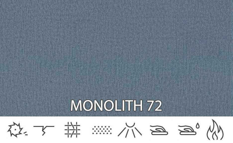 Monolith je odolná plyšová látka, ktorá je príjemná na dotyk. Je pokrytá špeciálnou ochrannou vrstvou, ktorá vytvára hydrofóbnu vrstvu, ktorá chráni pred rýchlym vstrebaním rozliatych tekutín. Je vysoko odolná proti vyblednutiu a žmolkovaniu. Látka sa vyznačuje tieňovaním materiálu. Možno ju čistiť prostriedkami na ošetrovanie čalúnenia. Nemala by sa bieliť a vystavovať nadmerne vysokým teplotám – nesušiť v sušičke.