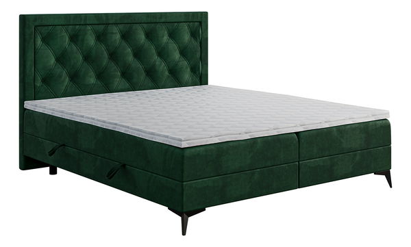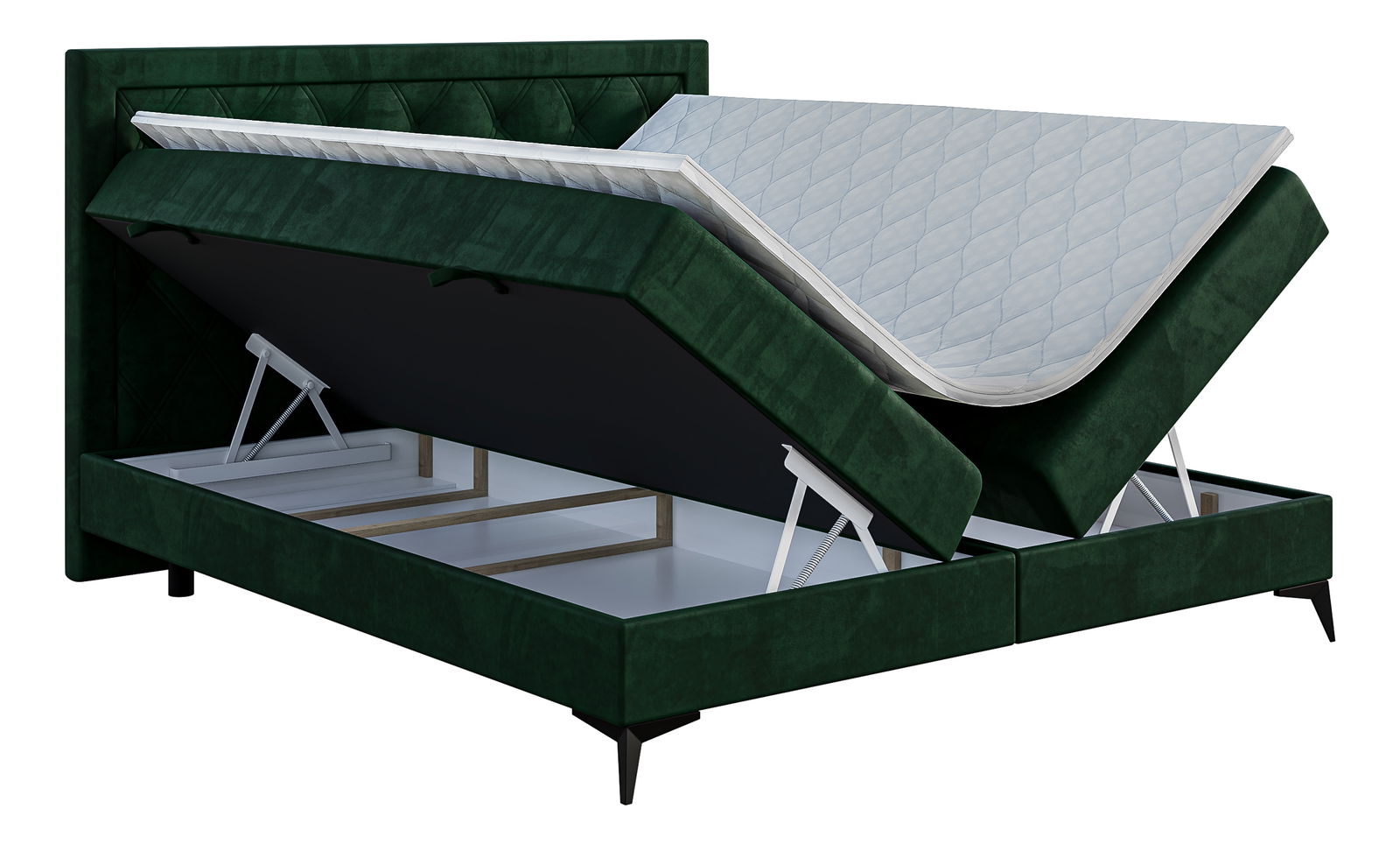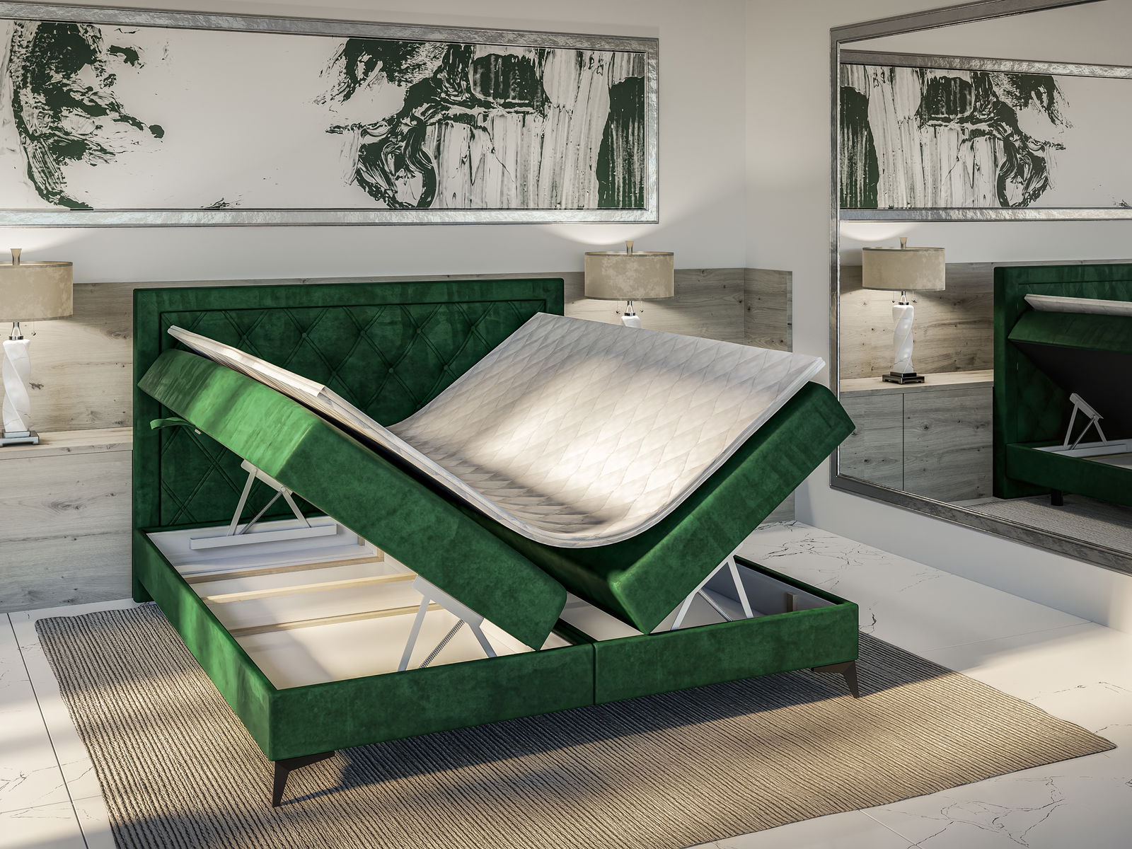 Manželská posteľ Boxspring 160 cm Dustin (tmavozelená) (s matracom a úl. priestorom)