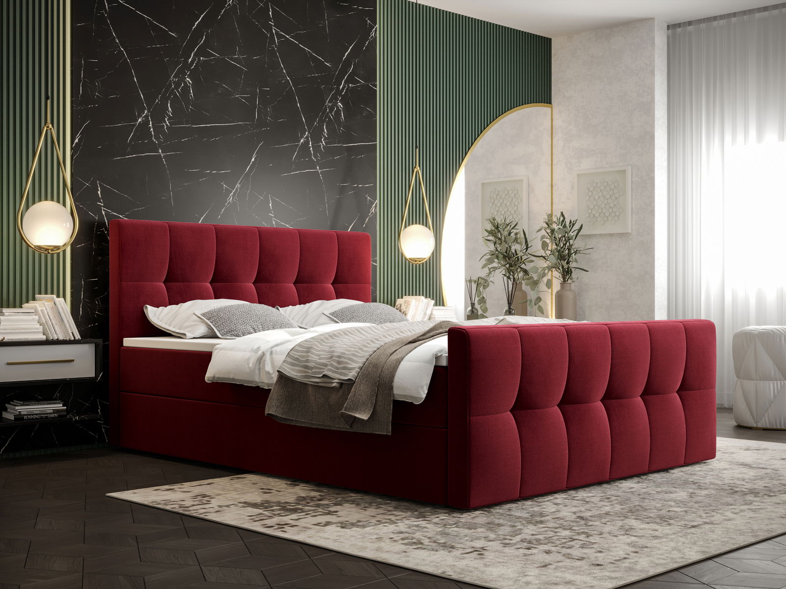 Manželská posteľ Boxspring 160 cm Macheta Comfort (bordová) (s matracom a úložným priestorom)