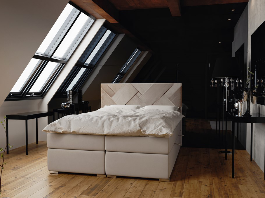 Je zdobené 6 čalúnenými pásmi o šírke 35 cm