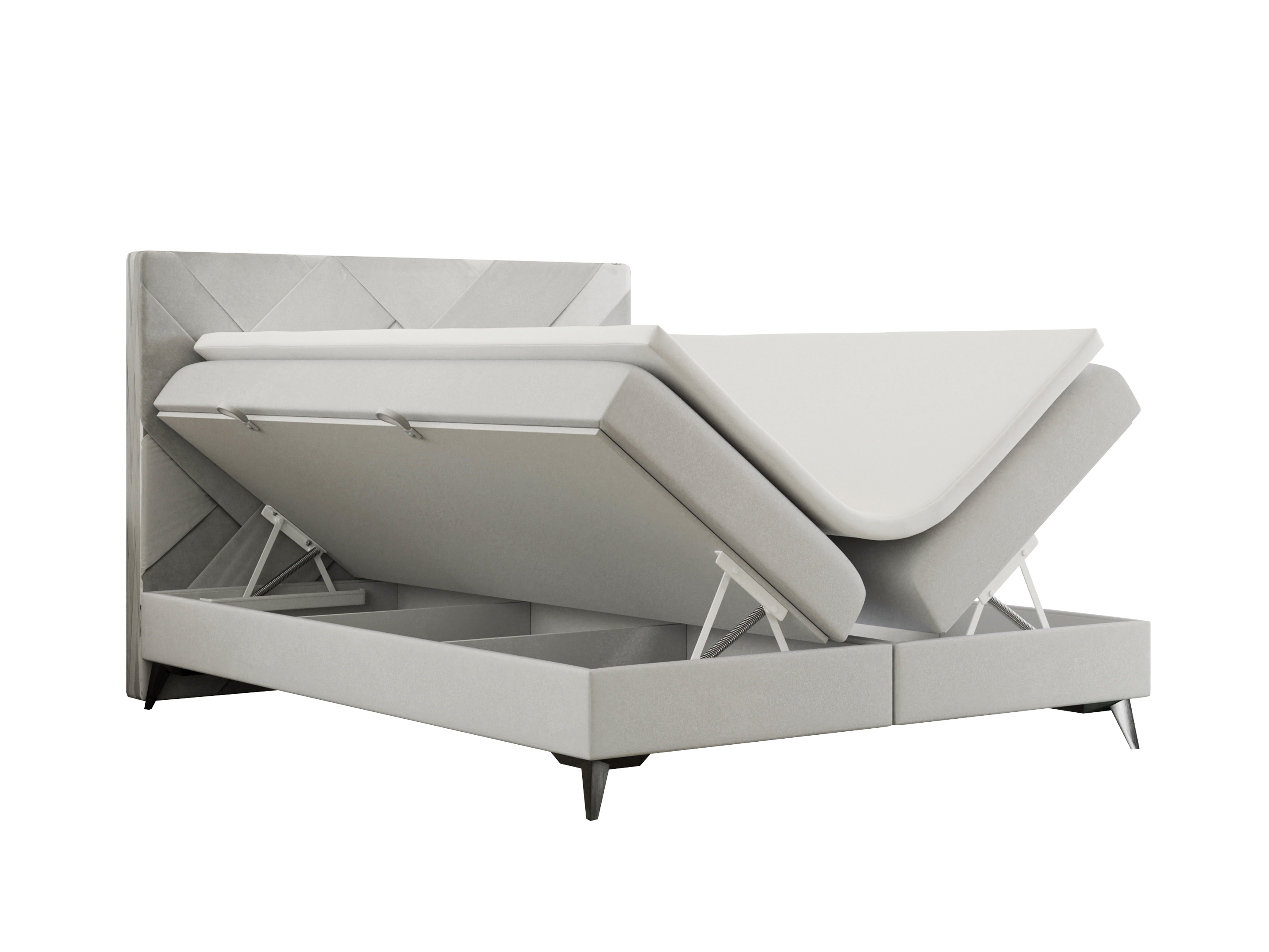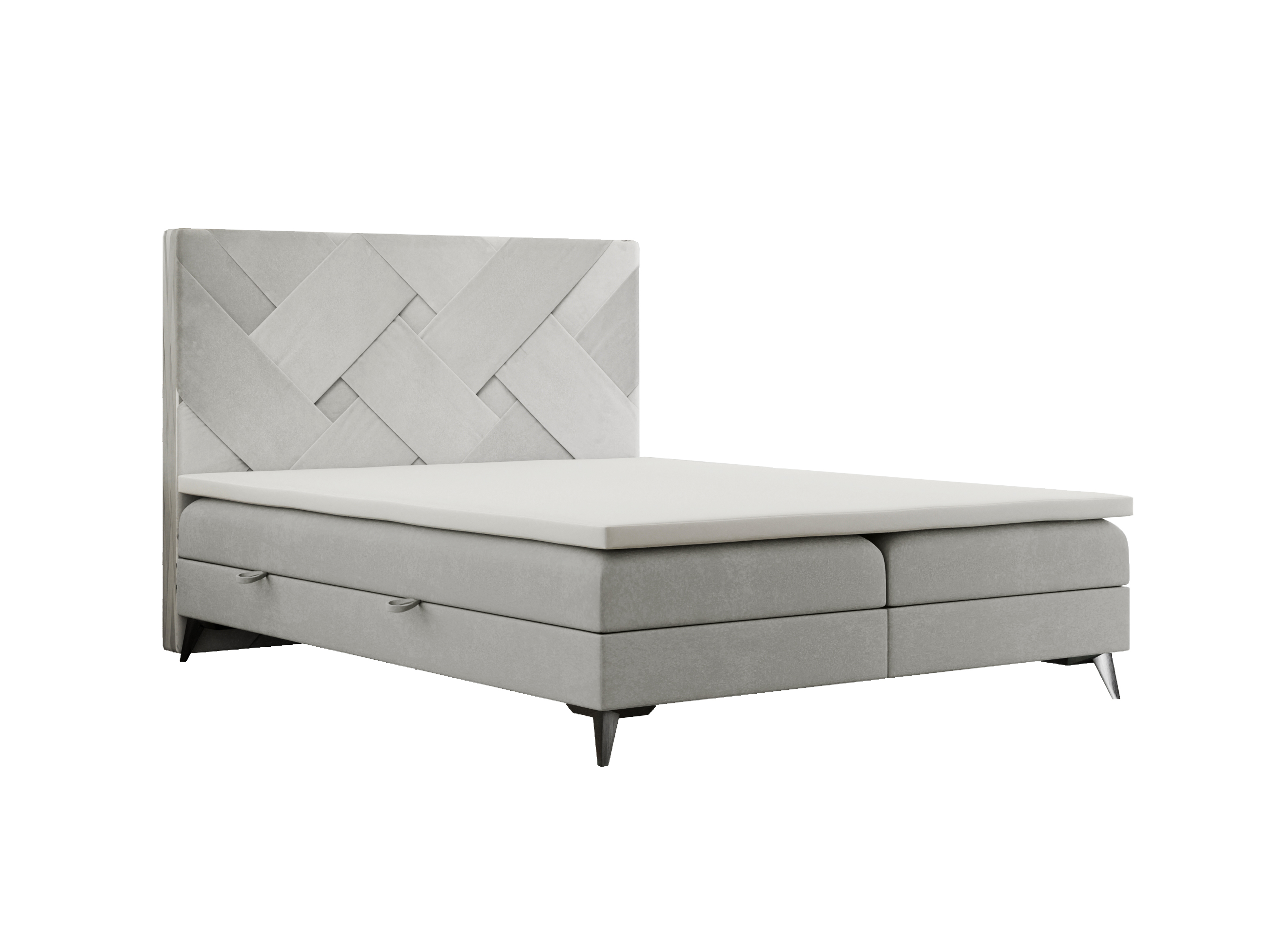 Manželská posteľ Boxspring 160 cm Melo (svetlosivá) (s úložným priestorom) je luxusná posteľ, ktorá spĺňa všetky požiadavky na pohodlný a zdravý spánok. Konštrukcia postele je z laminovanej drevotriesky bielej farby a má výklopný úložný priestor, ktorý je prístupný z bočnej strany postele. Posteľ je vybavená matracom s penou T-25 a pružinami Bonell o výške 20 cm a vrchným matracom (topperom) z peny T-21 o výške 5 cm, ktorý zabezpečí dokonalý spánok. Tkanina Magic Velvet je zamatová, hebká a jemná na dotyk. Posteľ má nosnosť 120 kg na lôžko/osobu a v balíkoch váži celkovo 178 kg. Táto posteľ je dostupná aj v ďalších farebných prevedeniach. V prípade záujmu o iné farebné prevedenie je potrebná záloha vo výške 50% z ceny produktu s DPH.