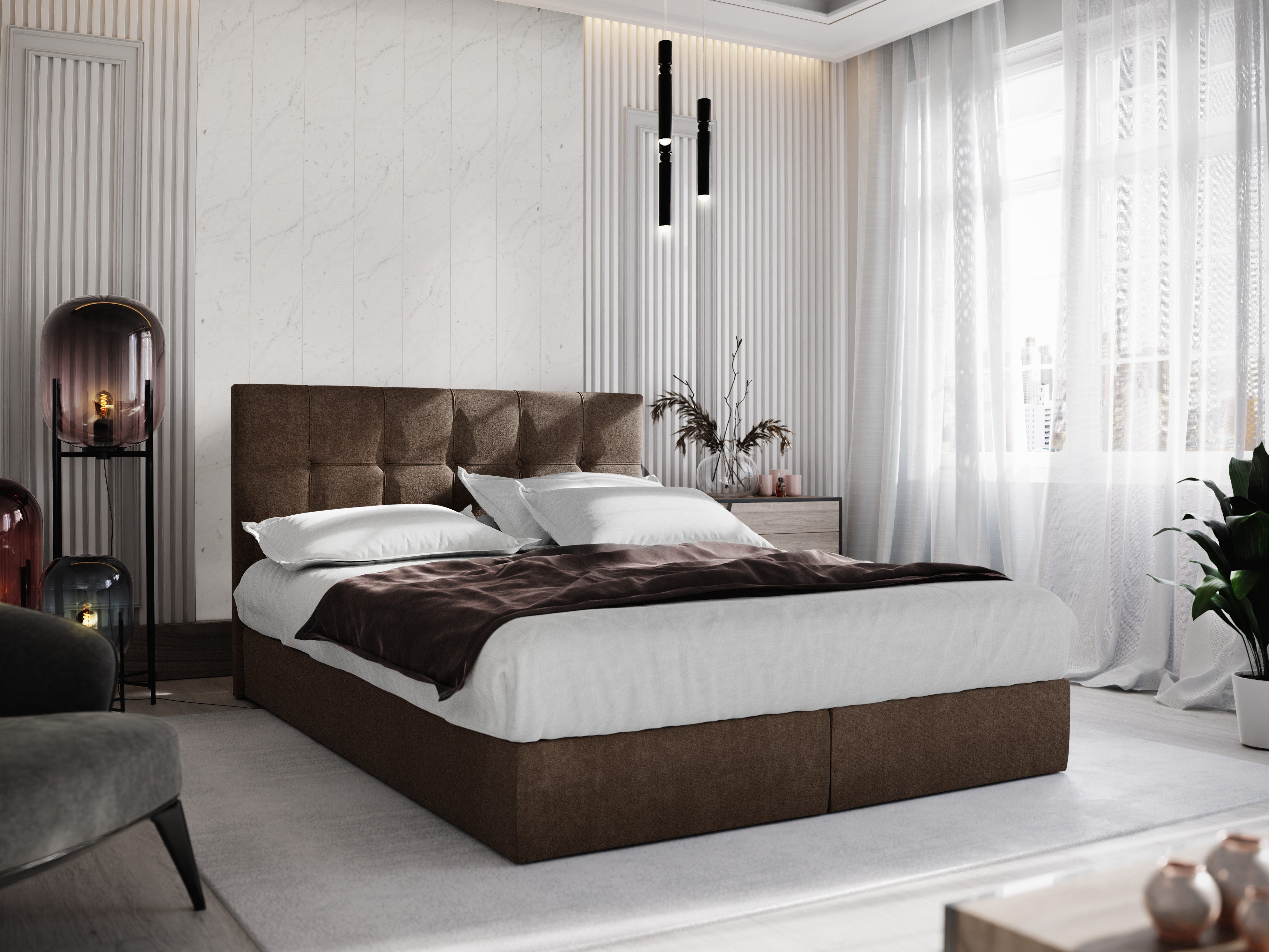 Manželská posteľ Boxspring 160 cm Porto (tmavohnedá) (s matracom a úložným priestorom)