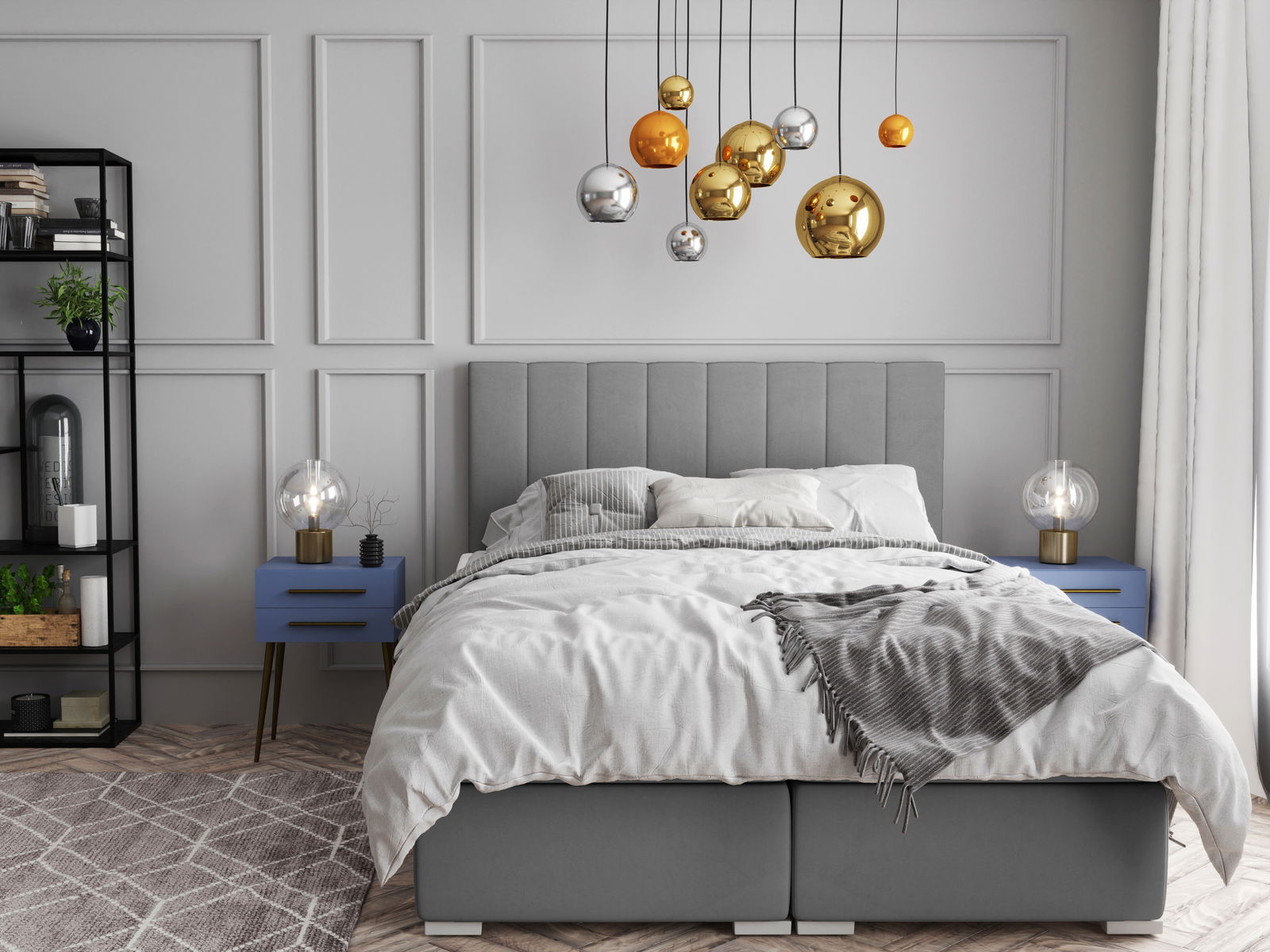 ZobraziťManželská posteľ Boxspring 160 cm Pugno (tmavosivá) s úložným priestorom je ideálnou voľbou pre dokonalý spánok a praktické uskladnenie vecí. Konštrukcia postele je z 16 mm laminovanej drevotriesky bielej farby a nožičky sú v sivej farbe z plastu. Súčasťou postele je matrac s topperom vyrobený z peny T-25 a pružín Bonell o výške 20 cm. Výklopný úložný priestor sa nachádza na bočnej strane postele a je k nemu prístup cez roštoovú dosku s matracom. Látka Solo na potiahnutie postele má vzhľad zamatu a je vyrobená z polyesteru s gramážou 320g/m². Posteľ má výšku 65 cm a nosnosť na lôžko/osobu 120 kg. Celková hmotnosť balíkov je 178 kg a posteľ má rozmery 207 x 160 x 118 cm (H x Š x V).