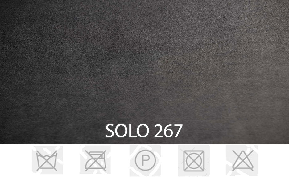 Poťahová látka Solo má vzhľad zamatu a je veľmi príjemná na dotyk. Látka Solo má špeciálny povlak Waterproof a Easyclean, ktorý odpudzuje vodu a ľahko sa čistí. Zloženie: 100% polyester. Gramáž: 320g/m² +/- 5%.