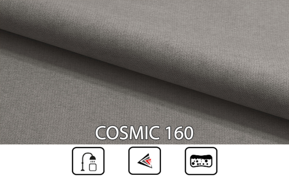 Poťahová látka Cosmic sa vyznačuje viditeľným vzorom, na dotyk hladký. Tkanina je mäkká a príjemná na dotyk. Vyrobená zo 100% PES. Jednoduchá na údržbu.