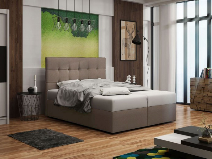 Manželská posteľ Boxspring 180 cm Duel 2 s hnedou farbou, matracom a úložným priestorom je luxusným kúskom, ktorý vyniká svojím dizajnom a jemnými detailmi. Táto kontinentálna posteľ je dostupná v troch veľkostiach a zahŕňa vysoký matrac vyrobený z kvalitnej peny a pružín Bonnell, ktoré zabezpečujú mäkkosť a odolnosť voči prehĺbeninám. Posteľ je tiež vybavená dvoma kontajnermi na úloženie posteľnej bielizne a iných vecí, ktoré potrebujete skladovať. Tkanina Cosmic 03, ktorou je posteľ pokrytá, je odolná voči vode a škvrnám. Posteľ je tiež vybavená roštom a matracom. Rozmery posteľného rámčeka sú 106 cm na výšku a 208 cm na hĺbku, s rozmermi spania 180 x 200 cm.