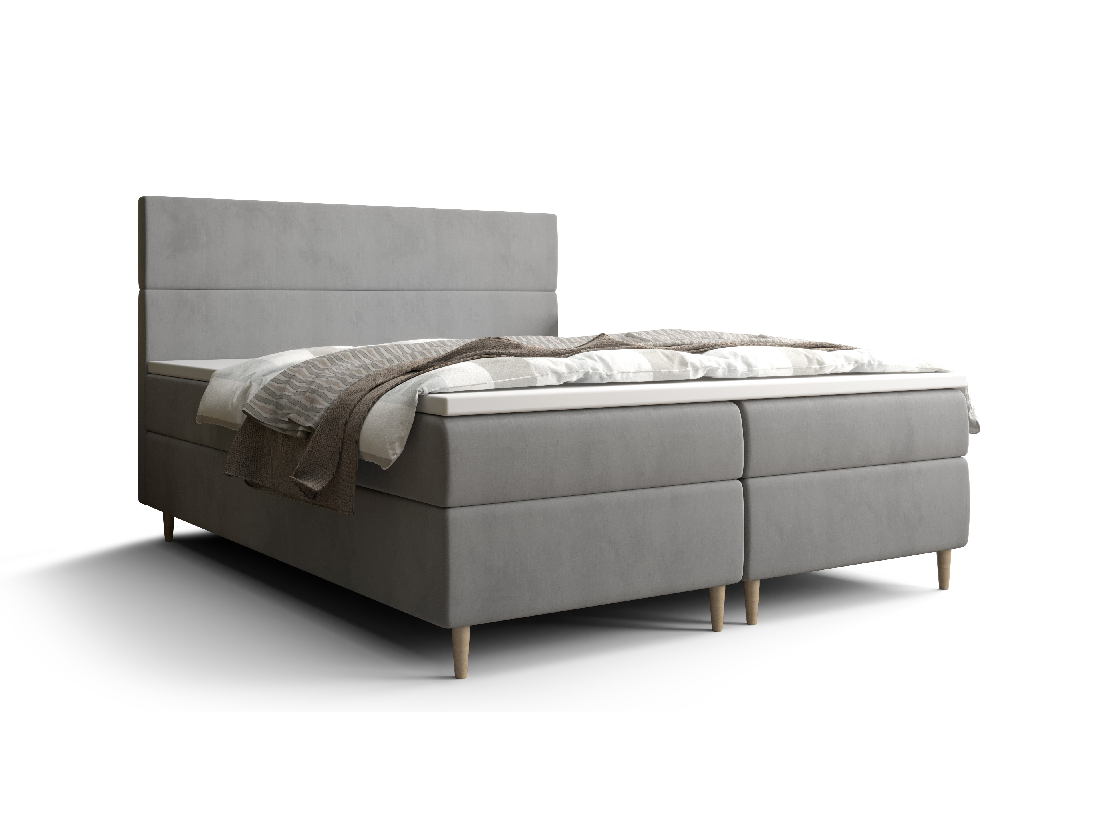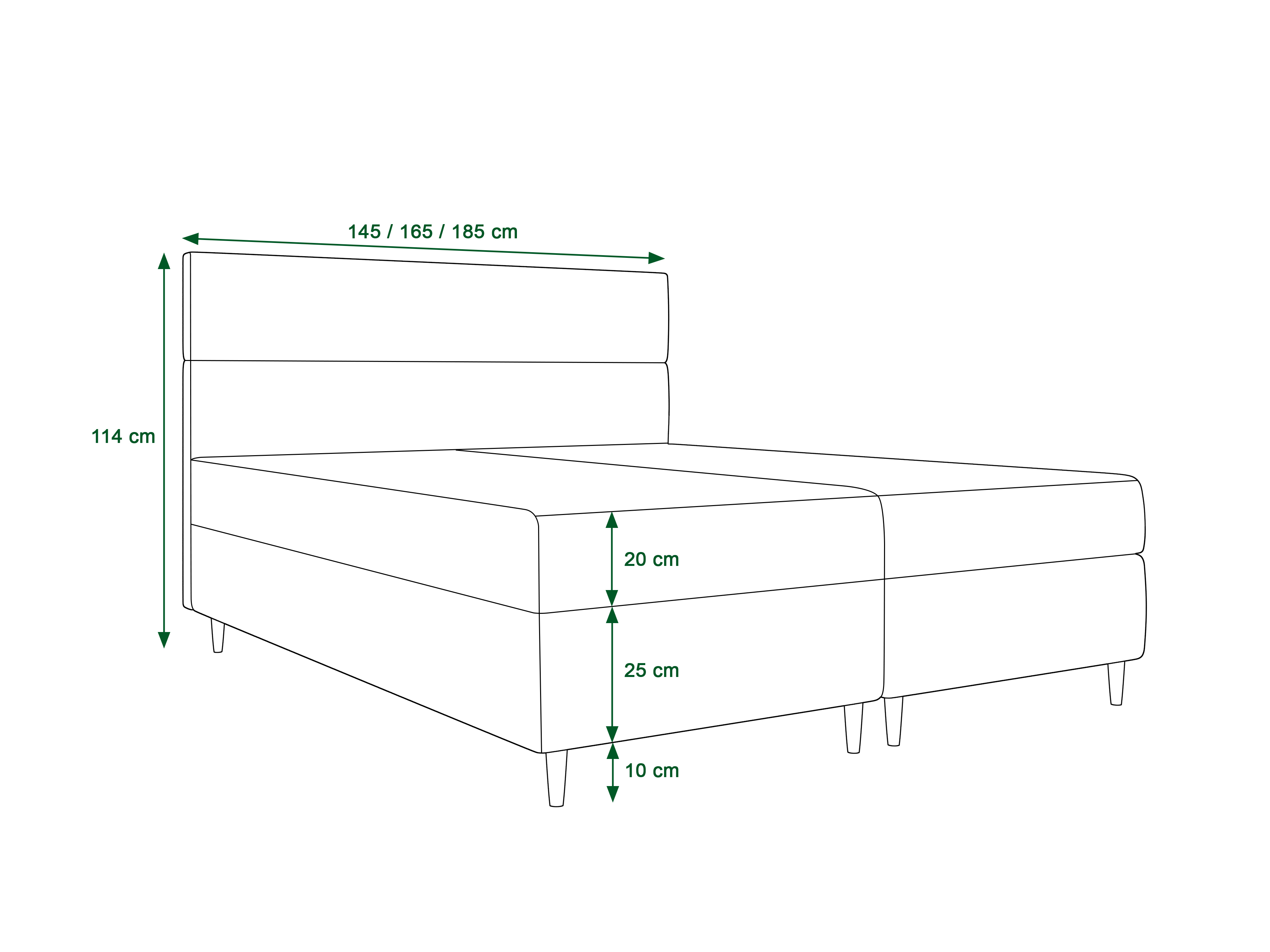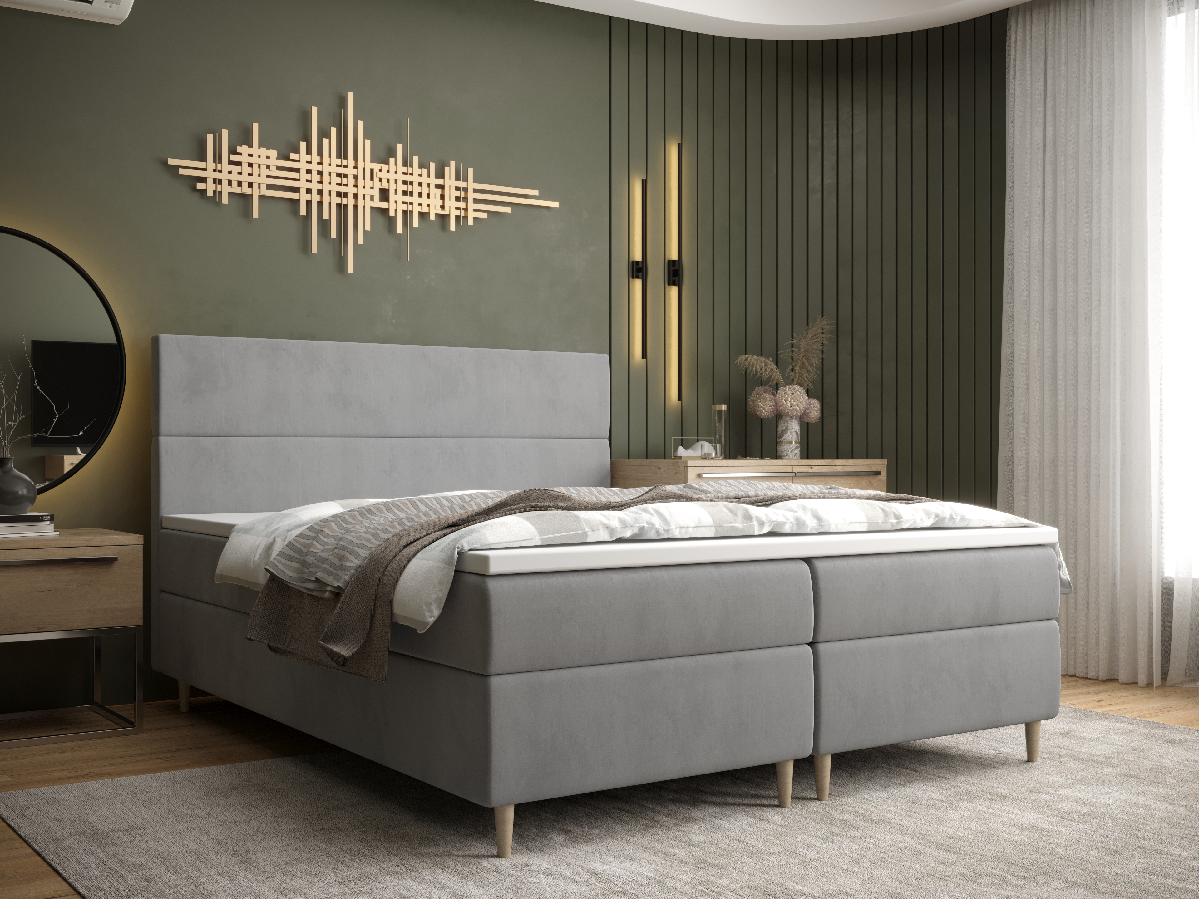 Manželská posteľ Boxspring 180 cm Flu (sivá) (s matracom a úložným priestorom) s výškou 114 cm a hĺbkou 210 cm Itaka 50 je luxusná kontinentálna posteľ s mäkkým matracom vyrobeným z kvalitnej peny a pružín Bonnell, zaručujúcim vysoký komfort spánku a odolnosť voči prehĺbeninám. Dve kontajnery na lôžkoviny sú vybavené mechanizmami pre ľahké otváranie a umožnia Vám uskladnenie posteľnej bielizne a iných vecí. Posteľ je k dispozícii v troch veľkostiach a aj v iných farbách. Tkanina Itaka 50 s viditeľným vzorom a netradičnou jemnosťou je vyrobená zo 100% PES a je jednoduchá na údržbu. Posteľ je dodávaná s roštom a matracom, ale topper nie je súčasťou produktu. Maximálne zaťaženie posteľe je 240 kg a balíky majú rozmery 202x92x48 cm/50 kg, 202x92x48 cm/50 kg a 187x10x107 cm/20 kg.