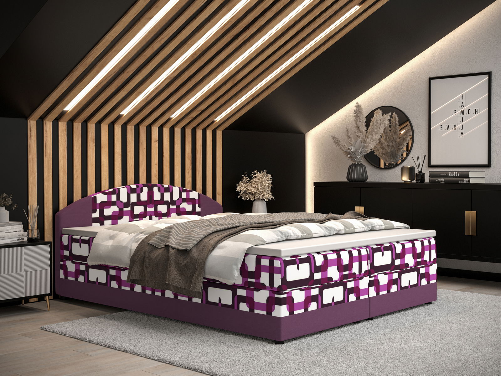 Manželská posteľ Boxspring 180 cm Orlando (vzor + fialová) (s matracom a úložným priestorom)