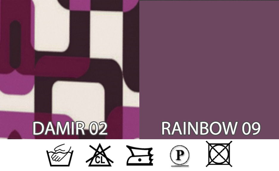 Poťahová látka Rainbow je jemná, na dotyk príjemná nenáročná na údržbu. Nevystavujte látku vysokým teplotám – nežehlite, neperte na mokro a nepoužívajte prostriedky na bielenie. Starostlivosť a čistenie iba so špeciálnymi prostriedkami na čalúnený nábytok.