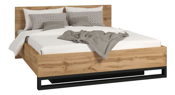 Manželská posteľ - Helles 180 (dub wotan + čierna) (s úl. priestorom) - Pohodlná manželská posteľ s rafinovaným, čistým dizajnom, ideálna pre sladké sny. Preglejka so vzorom dubu wotan a štíhle, minimalistické línie dodávajú tejto posteli moderný, no aj tak zútulňujúci vzhľad.