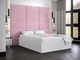 Manželská posteľ BELLA s čalúneným čelom a rozmerom 160x200 cm v bielom matnom prevedení s ružovými farebnými panelmi je ideálnou voľbou pre elegantnú a jemne dizajnovanú spálňu. Posteľ je vyrobená z pevnej laminovanej dosky a dodáva sa s odolným roštom z borovicového dreva pre maximálny komfort. K posteli patria mäkké farebné panely, ktoré dodajú nevšedný vzhľad. Tkanina Manila na paneloch je trvácna, odolná voči treniu a oderu a má nehorľavé vlastnosti. Posteľ sa dodáva v dvoch balíkoch a matrac nie je súčasťou balenia.