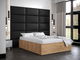 Manželská posteľ s čalúneným čelom 160 cm Brittany 1 (dub craft zlatý + čierna) (s roštom) je elegantná a robustná posteľ so širokou škálou farieb, ktorá zapadne do každej spálne. Pevná konštrukcia z laminovanej dosky a roštu z borovicového dreva zaručujú vysoký komfort používania na roky. Posteľ je vybavená mäkkými farebnými panelmi, ktoré dodávajú posteli nevšedný vzhľad. Plocha na spanie má rozmer 160x200 cm, a korpus postele je z laminovanej dosky s hrúbkou 16 mm. Posteľ je vyrobená s odolným roštom z borovicového dreva a opláštená soft tkaninou, ktorá je dotykovo príjemná a imituje kožu. Posteľ nie je vybavená nožičkami, ale obsahuje odolné PVC lemovanie. Matrac nie je súčasťou ceny produktu, ale je možné si ho priobjednať. Počet čalúnených panelov je 15, pričom rozmery jedného panelu sú 84x42x4 cm a sú zhotovené z 8 mm hrubej dosky a 3 cm hrubej peny T18 a tkaniny Soft 11. Manželská posteľ je dodávaná v dvoch balíkoch, pričom balík 1 má rozmer 174x47x57 cm a váži 16 kg a balík 2 má rozmer 207x49x57 cm a váži 32,6 kg.