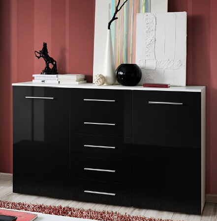 Komoda Fox je vyrobená ako doplnok do obývacích izieb, spální alebo pracovní. Je trojdielna, pričom po stranách je úložný priestor s dvomi policami, ktorý je uzavretý dvierkami. V strede sa nachádza päť zásuviek. Celkový dizajn podtrhujú elegantné podlhovasté uchyty. Vrchná časť komody môže slúžiť ako odkladací priestor na dekoračné predmety. Vďaka množstvu farebných prevedení je ju možné ľahko kombinovať s ostatným nábytkom v miestnosti.