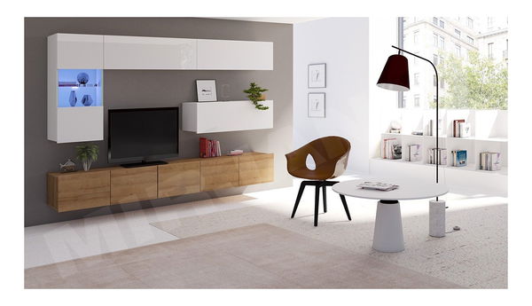 Obývacia stena je ideálnou voľbou pre tých, ktorí hľadajú pohodlie a štýl. Pri navrhovaní nástennej zostavy Bralani sme zohľadnili funkčnosť každého prvku, ktorý je súčasťou zostavy. Nástenná jednotka Bralani IV sa skladá z 3 uzavretých nástenných políc, 2 RTV skriniek a vitríny s presklením v strednej časti, ktorú možno dodatočne vybaviť LED osvetlením. Nadčasové farby nástennej jednotky a lesklé čelá dokonale ladia s moderným zariadením. Uvedená cena zahrňuje nasledujúce komponenty: TV skrinka Bralani 150 BR04: šírka: 150, výška: 32, hĺbka: 43 x 1ks TV skrinka Bralani 100 BR03: šírka: 100, výška: 32, hĺbka: 43 x 1ks Police Bralani BR02: šírka: 105, výška: 35, hĺbka: 32 x 3ks Závesná vitrína Bralani BR05: šírka: 45, výška: 117, hĺbka: 32 x 1ks Farby: možnosť výberu farieb tu Prevedenie: korpus – laminovaná drevotriesková - 16mm, dvierka – laminovaná drevotriesková - 15mm, tv skrinka môže byť voľne stojaca (nôžky - strieborné - 5cm) alebo je možné ju zavesiť na stenu, hrany PVC, kalené sklo, bez úchytiek, s možnosťou dokúpenia LED osvetlenia studené biele alebo modré, súčasťou zostavy sú pliešky k montáži na stenu, ale súčasťou nie sú montážne hmoždinky Záručná doba: 24 mesiacov