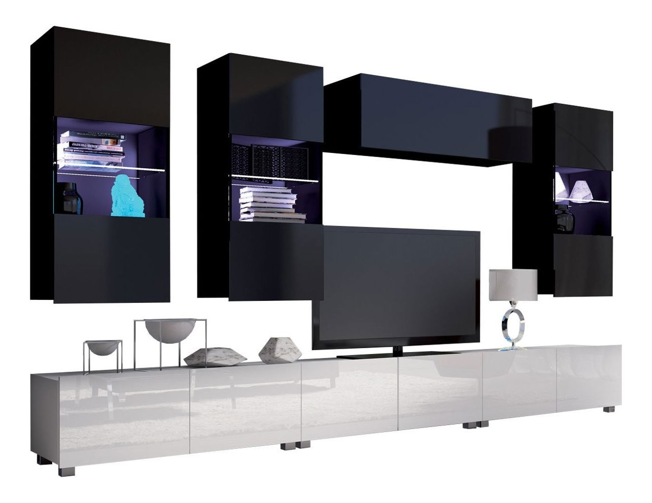 Nábytok do obývacej izby Badiani XI (biela + biela lesklá)