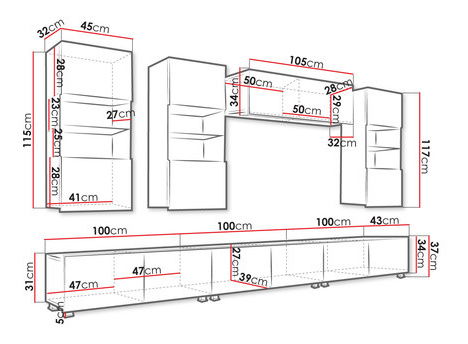 ZobraziťObývacia stena je ideálnou voľbou pre tých, ktorí hľadajú pohodlie a štýl. Obývacia stena Bralani je ideálna súprava do obývačky alebo salónu. Čelá nástennej skrinky sú vyrobené vo vysokom lesku, čím získavajú moderný štýl. Dokonale tak vystavíte svoje RTV vybavenie. Súprava sa skladá až zo 7 prvkov, medzi ktoré patrí: 3 nástenných skriniek, 3 univerzálnych skriniek a uzavretej skrinky. Po spojení môže byť súprava dlhá až 3 metre. Skrinky RTV si môžete prispôsobiť svojej obývačke, pretože ich môžete zavesiť a postaviť na nožičky. Súprava nemá žiadne úchytky, čo jej dodáva minimalistický charakter, a možnosť dokúpenia LED osvetlenia je veľmi úsporným riešením. Uvedená cena zahrňuje nasledujúce komponenty: TV skrinka Bralani 100 BR03: šírka: 100, výška: 37, hĺbka: 43 x 3ks Závesná vitrína Bralani BR05: šírka: 45, výška: 117, hĺbka: 32 x 3ks Police Bralani BR02: šírka: 105, výška: 35, hĺbka: 32 x 1ks Farby: možnosť výberu farieb tu Prevedenie: korpus – laminovaná drevotriesková - 16mm, dvierka – laminovaná drevotriesková - 15mm, tv skrinka môže byť voľne stojaca (nôžky - strieborné - 5cm) alebo je možné ju zavesiť na stenu, hrany PVC, kalené sklo, bez úchytiek, s možnosťou dokúpenia LED osvetlenia studené biele alebo modré, súčasťou zostavy sú pliešky k montáži na stenu, ale súčasťou nie sú montážne hmoždinky Záručná doba: 24 mesiacov
