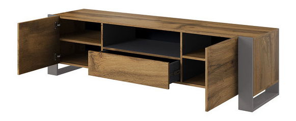ZobraziťNábytok do obývacej izby je ideálnou voľbou pre tých, ktorí hľadajú pohodlie a štýl. Zostava obsahuje tieto prvky: Vitrína Empire: šírka: 65 cm, výška: 171 cm, hĺbka: 40 cm, Komoda Empire: šírka: 164 cm, výška: 80 cm, hĺbka: 44 cm, TV skrinka Empire: šírka: 180 cm, výška: 48 cm, hĺbka: 43 cm Prevedenie: korpus (vrch, boky, lamely) - matná laminovaná drevotrieska hrúbka 16 mm, vpredu - 16 mm hrubá matná laminovaná drevotrieska, žiadne držadlá (predné strany mierne vyčnievajú), nohy: 16 mm hrubá antracitová laminovaná doska, univerzálna zobrazovacia jednotka: dajú sa nainštalovať predné strany otvárané vpravo alebo vľavo Záruka: 24 mesiacov