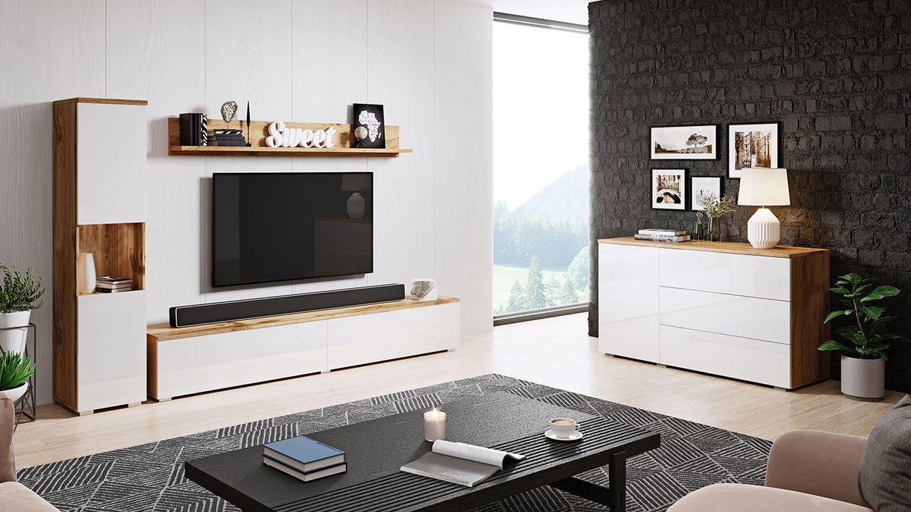 Nábytok do obývacej izby Nova I (wotan + biely lesk)