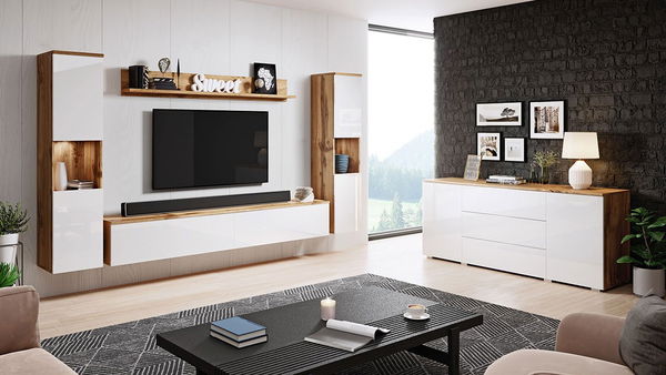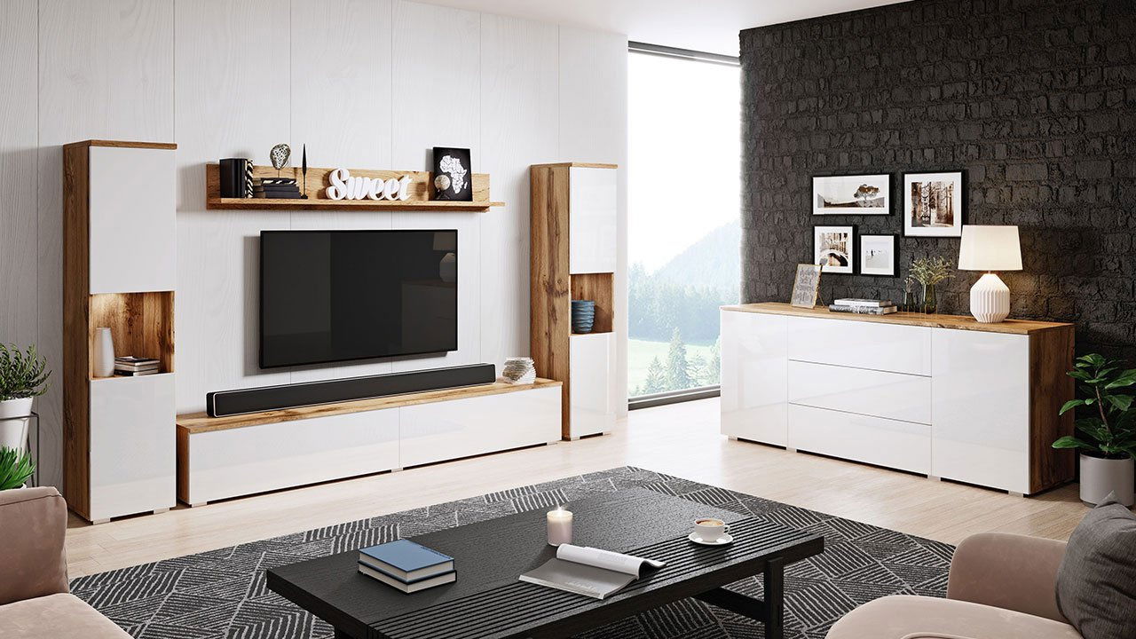 Nábytok do obývacej izby Nova II (wotan + biely lesk)