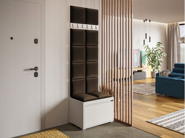 Nábytok do predsiene Konkor 60 + 12 kusov čalúnených nástenných panelov Pag 30x30 (biela + tmavohnedá) *výpredaj