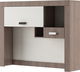Šikovná nadstavbu s úložným priestorom výborne doplní priestor nad pracovným stolom. Nábytok obsahuje širšiu uzatvárateľnú skrinku, drobnú zásuvku a 2 otvorené poličky.