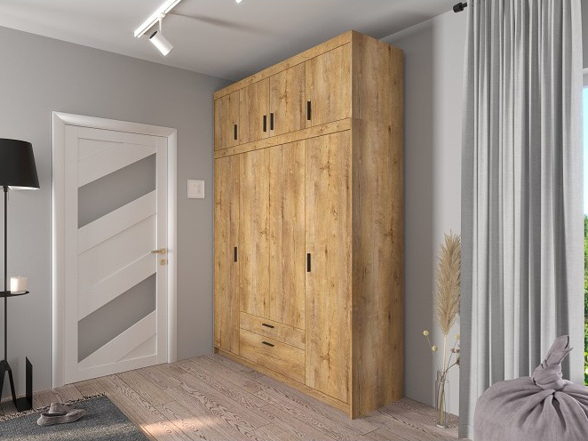 Nadstavba na šatníkovú skriňu Elanor IV v dubovo-bielej farbe je ideálnou voľbou pre tých, ktorí potrebujú zväčšiť úložný priestor v skrini. S výškou 55 cm a hĺbkou 53 cm poskytuje dostatok miesta pre uloženie ďalších vecí. Materiál korpusu je laminát v dubovom prevedení Lefkas a predná strana je tiež z laminátu v rovnakej farbe. Plastové úchyty sú praktickým doplnkom k tejto nadstavbe. V ponuke sú aj ďalšie farebné prevedenia. S touto nadstavbou budete mať viac miesta pre svoje oblečenie a doplnky.