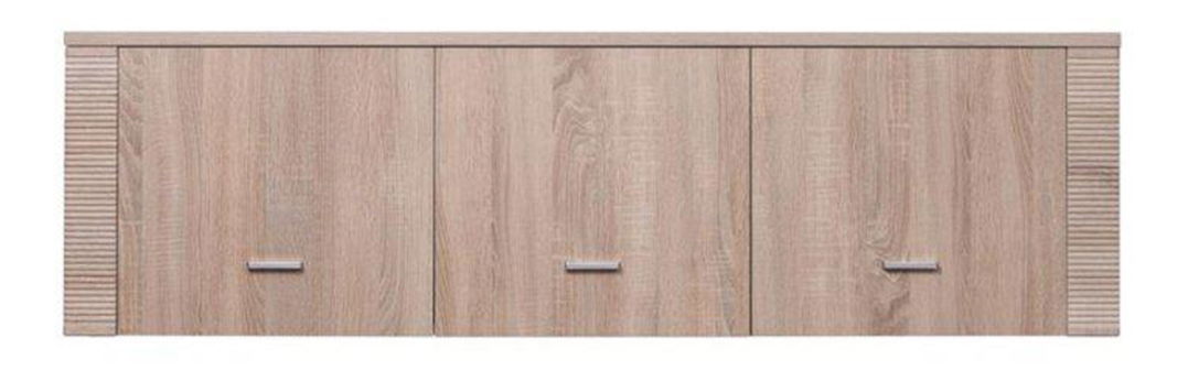 Nadstavba na skriňu Gary Typ 14 je trojdielna nadstavba s tromi dvierkami, ktorá sa položí na šatníkovú skriňu. Je vyrobená z kvalitnej laminovanej DTD v odtieni Dubu Sonoma. Tento sektorový nábytok GrandNábytok je vhodný na zariadenie obývacích izieb, spální aj pracovní. Hrany jednotlivých komponentov sú ukončené vrúbkovanou lištou, čo dodáva celému kusu nábytku eleganciu. Nadstavba sa bude dobre vynímať v obývacej izbe, ale môže byť tiež vhodná do spálne, reprezentatívnej pracovne alebo predsieň. Rozmery sú 160,8x47,2x55 cm a hrúbka materiálu korpusu je 16 mm, hrúbka vrchnej a spodnej dosky je 22 mm. Nábytok sa dodáva v demonte.
