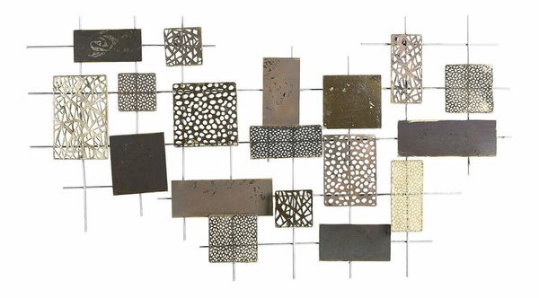 Vneste do svojho interiéru nádych industriálneho štýlu pomocou tejto nástennej kovovej dekorácie. Vďaka úžasnej kombinácii zlatej a striebornej farby doplní akýkoľvek štýl interiérového zariadenia. Abstraktný a zároveň jedinečný dizajn bude vyzerať výborne v horizontálnej alebo vertikálnej polohe. Vďaka háčikom ju môžete jednoducho zavesiť na stenu.