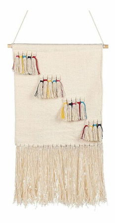 Doplňte svoj interiér touto nástennou dekoráciou, ktorá ho príjemne zútulní. Ručne tkaná dekorácia z bavlny je doplnená strapcami a farebnými detailmi. Bude skvelým doplnkom do obývacej izby alebo spálne zariadenej v štýle boho a bude sa hodiť aj do detskej izby.