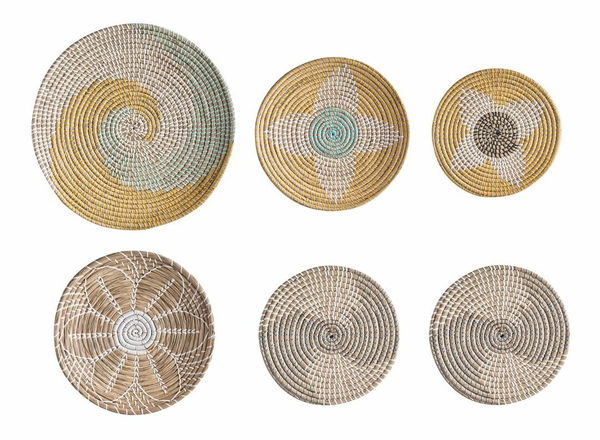 Oživte svoj obytný priestor farebnou sadou štýlových nástenných dekorácií v boho štýle. Všetky kusy sú ručne vyrobené z morskej trávy a vyznačujú sa odolnosťou a nenáročnou údržbou. Na zadnej strane majú háčiky, vďaka ktorým sa dajú ľahko zavesiť na stenu, a sú skvelým doplnkom do akéhokoľvek interiéru. Každá dekorácia sa vyznačuje inou farebnou kombináciou a vzorom, ktorá určite očarí všetkých hostí.