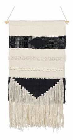 Ak chcete, aby vaša obývacia izba alebo spálňa vyzerala útulne, ozdobte ju touto dekoráciou na stenu. Vďaka kombinácii svetlej béžovej a čiernej, geometrického vzoru a ozdobných strapcov získa váš interiér jedinečné čaro. Táto nástenná dekorácia je ručne vyrobená z bavlny a borovicového dreva, čím je zaručená jej trvácnosť a kvalita na dlhé roky.
