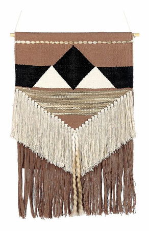 S touto nástennou dekoráciou získa vaša obývacia izba nádych bohémskeho štýlu. Dekoráciu navrhnutú v odtieňoch hnedej a béžovej dopĺňa pútavý geometrický vzor v čiernej farbe. Táto jedinečná, ručne vyrobená dekorácia na stenu je vyrobená z odolných materiálov a bude vám robiť radosť dlhé roky.