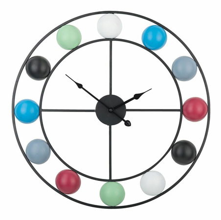 Oživte vzhľad interiéru týmito očarujúcimi nástennými hodinami. Kruhový rám s nezvyčajnými farebnými guľami je vyrobený zo železa a je veľmi pevný. Hodiny majú otvorený ciferník a ručičky v tvare šípky a sú ideálne do akéhokoľvek moderného či vintage interiéru.
