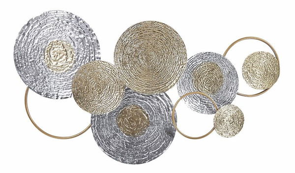 Vyzdobte si steny v interiéri nielen klasickým zarámovaným umením alebo obrázkami, ale aj 3D kovovou dekoráciou. Nechajte sa inšpirovať a využite prázdny priestor nad skriňou alebo iným nábytkom a doplňte ho touto jedinečnou ozdobou z kovu v odtieňoch zlatej a striebornej. Kruhy a prstence dodajú každému interiéru moderný nádych.