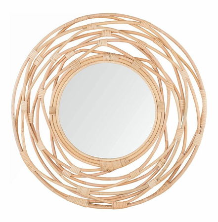 Dodajte svojej chodbe alebo obývačke boho atmosféru s týmto zrkadlom z prírodného ratanu. Zrkadlo postavené na drevenom ráme je veľmi odolné, no zároveň má jemne pôsobiacu štrukúru. Skvele poslúži ako funkčné zrkadlo do predsiene, alebo ako dekorácia do obývačky.