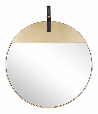 Dodajte svojmu interiéru nádych glamour štýlu pomocou tohto okrúhleho zrkadla v zlatej farbe. Vysokokvalitné sklo v kombinácii so železným rámom sú zárukou odolnosti a dlhej životnosti. Zrkadlo sa stane pútavým prvkom akejkoľvek spálne alebo obývačky a nádherne vynikne aj nad toaletným stolíkom. Vďaka elegantnému remienku z umelej kože je možné zrkadlo jednoducho zavesiť na stenu.