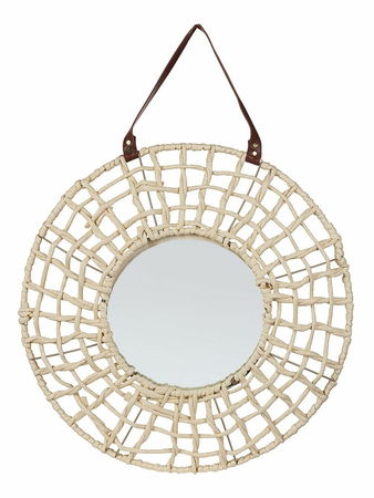Moderné prevedenie nástenného zrkadla v originálnom boho štýle je dokonalým doplnkom do interiéru. Ozdobný remienok z umelej kože v teplom odtieni hnedej dodáva tejto zdanlivo nenápadnej dekorácii osobitý charakter. Bohémsky dizajn tohto zrkadla sa perfektne hodí k interiérovému zariadeniu v neutrálnych aj výrazných farbách.