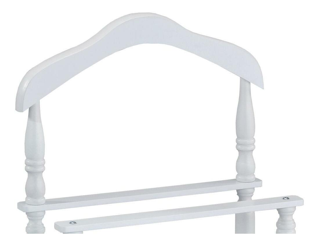 Praktický a výrazný retro nemý sluha z masívneho dreva kaučukovníka v elegantnom bielom matnom laku Výška 108 cm Vám umožní zavesenie oblečenia aj doplnkov úplne bez pokrčenia. Nosnosť stojana je až 7 kg rovnomerne rozprestretej záťaže, hmotnosť 4 kg. Aj preto je jednoducho prenositeľný a je možné ho umiestniť podľa momentálnej potreby aj nálady. Štýlom sa hodí nielen do seversky zariadených interiérov. Výrazným solitérom bude aj v odlišne zariadených interiéroch. Využitie je nepreberné, záleží len na Vás.