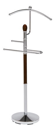 Pekný elegantný vešiak Marko I si Vás získa vkusným dizajnom, ktorý je doplnený o kovový rám vo farbe chrómu s drevenými prvkami z tmavého dreva.