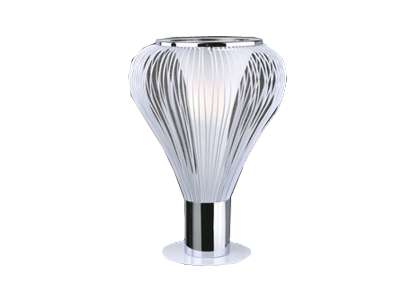 Stolná lampa KM9209T bude krásnym doplnkom do Vášho moderne zariadeného interiéru. Kostra lampy je z kovu vo farebnom prevedení chrómu a tienidlo je vyrobené zo skla v kombinácií s kovom v čiernej farbe.