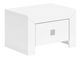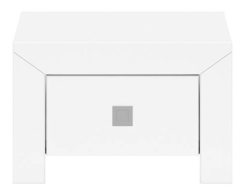 Nočný stolík so zásuvkou na valčekových koľajničkách. Moderný úchyt typu push - pull (zatlač a potiahni) zladený s povrchom dvierok. Dostupný v dvoch farebných prevedeniach: biely a lesk biely.