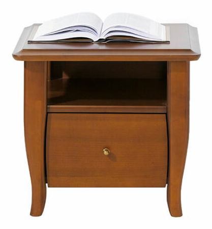 Nočný stolík výrazného archaického dizajnu, ktorým vnesiete do vašich spální atmosféru časov minulých. Ozdobne vyrezané nohy a vrchná doska stolíka sú doplnené o drobný guľatý úchyt na zásuvke. Stolík bude praktickým doplnkom a odložíte si v ňom všetko, čo budete chcieť mať vždy po ruke.