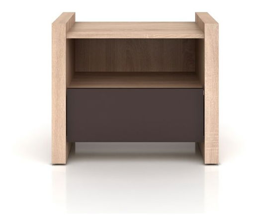Nočný stolík robustnejšieho moderného dizajnu so zásuvkou bez úchytov. Stolík má aj voľnú poličku na odkladanie drobností. Poslúži vám v spálni a môžete si naň odložiť obľúbenú knihu alebo akékoľvek veci, ktoré chcete mať vždy po ruke.