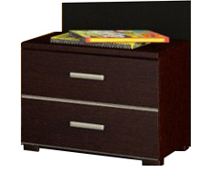 Dvojzásuvkový nočný stolík s minimalistickými sivými úchytmi a tenkou sivou priečnou linkou medzi zásuvkami. Minimalistické nožičky.
